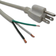 This 6-foot power cord is designed for use in North America and meets industry standards. Made from white PVC thermoplastic SJTW cable, it features an 18-gauge, three-conductor construction for durability and flexibility. The male end is a molded NEMA 5-15 plug, ensuring compatibility with standard outlets. The female end is open, with the outer jacket removed ("ROJ") by 2 inches and the conductors stripped 1/4 inch, making it easy to customize or connect directly to a device. Suitable for both indoor and outdoor applications, this cord is a practical choice for various electrical needs.