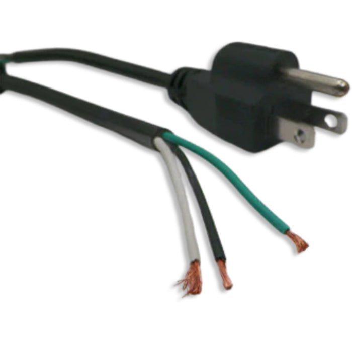 This industry standard 8ft power cord is made for the North American market.  The cord is black PVC thermoplastic SVTcable in 18 gauge 3 conductors.  The male end is quality molded with a Nema 5-15Plug.  The female end is open with the outer jacket removed or “ROJ” 2 inches with the ends stripped 5/8 inch.  This cord is perfect for indoor use.