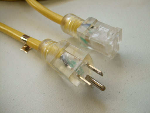 100FT Nema 5-15P to Nema 5-15R Lighted Yellow Extension Cord 12/3 SJTW NA 20A 125V