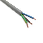 This industry standard bulk wire or bulk cable is for the International market. This stranded cable is gray PVC thermoplastic SJTOW, it has oil and weather resistance and is approved for outdoor general use. This is a 18 gauge cord with 3 conductors; brown =hot, blue=neutral, green/yellow=ground.