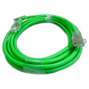 100FT NEMA 5-15P TO NEMA 5-15R NEON GREEN LIGHTED EXTENSION CORD 12/3 SJTW NA 20A 125V