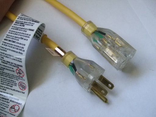 50FT Nema 5-15P to Nema 5-15R Lighted Yellow Extension Cord 16/3 SJTW NA 13A 125V