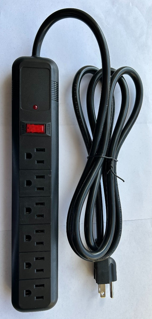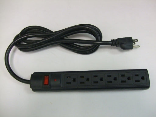 6FT Power Strip Nema 5-15P to 6 Outlet Black Surge Suppressor 14/3 SJT NA 15A 125V