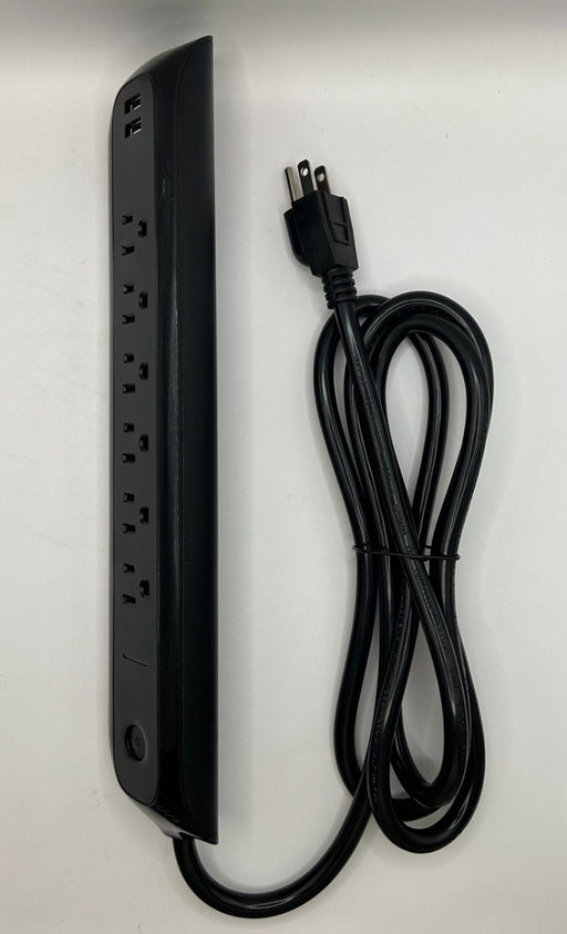 8FT Power Strip Nema 5-15P to 6 Outlet Black Surge Suppressor 14/3 SJT NA 15A 125V