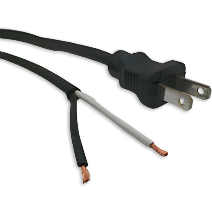 This industry standard 6ft 3in power cord is made for the North American market. The cord is black PVC thermoplastic SJTOW in 18 gauge 2 conductor. The male end is quality molded with a Nema 1-15Plug that is non-polarized so that the cord will only fit in one way. The female end is open with the outer jacket removed or “ROJ” 2 inches with the ends stripped 3/8inch. Perfect for indoor or outdoor use.