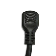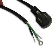 Specifications: This 3 foot power cord is standard for the North American market. It features a molded 5-15 plug in the right angle with a south pole position. End 2 has the outer jacket removed 2 inches. The black and white conductors are stripped 1/2 inch and tinned while the green is terminated with a #10 uninstulated ring.