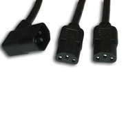 This industry standard 10ft computer power cord is made for the North American market. The cord is black PVC thermoplastic SJTW cable in 18 gauge 3 conductors. The male end is quality molded with an IEC 320 C-14 right angled. The female end is a "Y" molded with 2 IEC 320 C-13. This cord is perfect for servers, computers or other electronic devices. These cords are not brand specific but they work with the major brands. The cord between the plug and the "Y" is 8ft 1in and between the "Y" to the receptacle it is 1ft 10in.