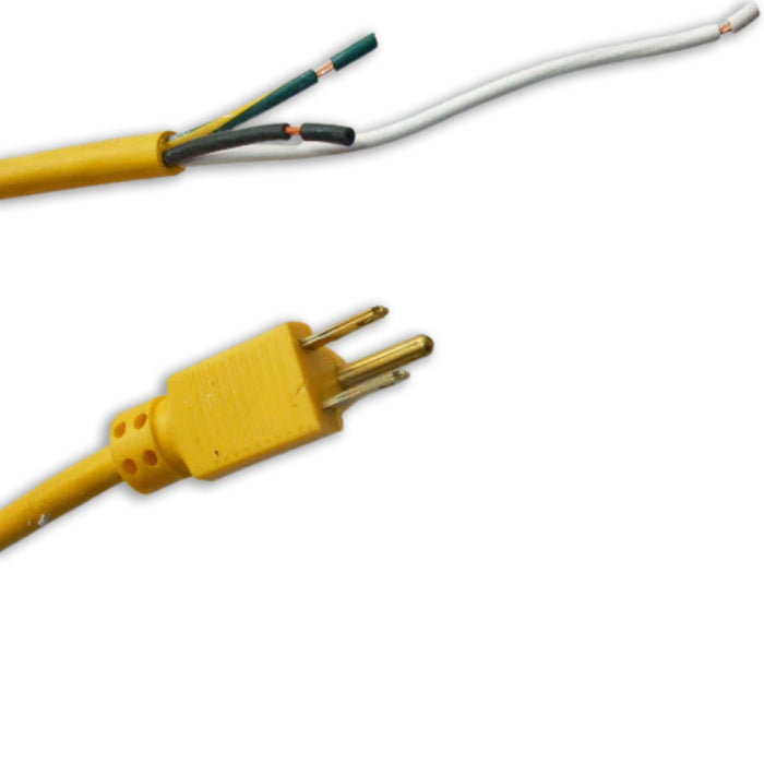 This industry standard 1ft 11in power cord is made for the North American market. The cord is black PVC thermoplastic SJTOW in 16 gauge 3 conductors. The male end is quality molded with a Nema 5-15Plug. The female end is open with the outer jacket removed or “ROJ” 4 inches the white is stripped 11/64" with the black and green conductors shortened to 1 1/2inch and stripped to 3/8inch. This cord is perfect for indoor or outdoor use.