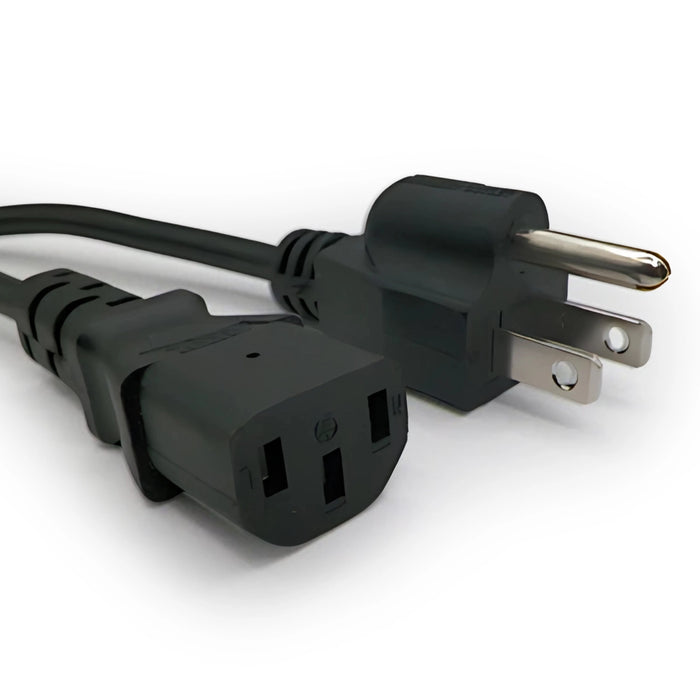 This 1-foot computer power cord meets industry standards and is designed for use in the North American market. It features a durable black PVC thermoplastic SVT cable with 18 AWG and three conductors. The male connector is a high-quality molded NEMA 5-15P, while the female connector is a molded IEC 320 C13. Ideal for powering LCD/LED TVs, servers, computers, and other electronic devices, this versatile cord is compatible with most major brands, though it is not brand-specific.