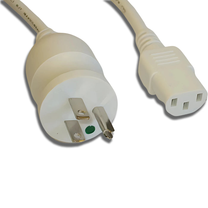 This industry standard 12ft hospital grade power cord is made for the North American market. The cord is white PVC thermoplastic SJT cable in 18 gauge 3 conductors. The male end is quality molded with a Nema 5-15 hospital plug with green dot. The female end is molded with a IEC 320 C-13. This cord is perfect for medical grade use, computers and electronics.