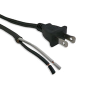 This industry standard 25ft 3in power cord is made for the North American market. The cord is black flexible rubber SJOW in 18 gauge 2 conductor. The male end is quality molded with a Nema 1-15Plug that is polarized so that the cord will only fit in one way. The female end is open with the outer jacket removed or “ROJ” 3inches with the black conductor stripped 3/16" and the white conductor fitted with a 1/4" quick connect securred with shrink tubing. The cord is hanked and tied. Perfect for indoor or outdoor use.