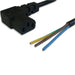 Specifications:   This computer power cord or computer power cable has connectors for the International (CEE) market. It features a blunt cut to an IEC-320 C-13LA left-angle receptacle. 18 gauge 3 conductor SJT type wire, 3 feet 2 inches in length, black in color, rated to 10 amperages and 250 volts.