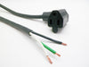 This power cord or power cable has standard connectors for North American market. It features a molded on Nema 5-15P (Male) Piggy Back plug to a ROJ 5in Black strip 1/4" White Shortened to 4" Strip 1/2" Green #8 insulated ring . 18 gauge SJTOW type wire, 3 conductors, 3 feet 6 inches in length, Black in color. It is rated up to 10 amperages and 125 volts. Also, it has a temperature rating of up to 105°C.