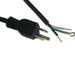 This industry standard 3ft power cord is made for the North American market. The cord is black PVC thermoplastic SJTW in 18 gauge 3 conductors. The male end is quality molded with a Nema 5-15Plug. The female end is open with the outer jacket removed or “ROJ” 2 inches with the black and white ends stripped 1/2 inch and tinned. The green end is fitted with a #10 uninsulated ring. This cord is perfect for indoor or outdoor use.