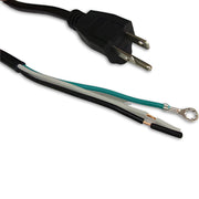 This industry standard 6ft 6in power cord is made for the North American market. The cord is black PVC thermoplastic SJTOW in 18 gauge 3 conductor. The male end is quality molded with a Nema 5-15Plug. The female end is open with the outer jacket removed or ROJ 4" 3C BW STRIP 1/2" #8 SERRATED RING ON GREEN. Perfect for indoor or outdoor use.