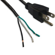This 6-foot power cord meets industry standards and is designed for use in the North American market. It features a durable black PVC thermoplastic SVT jacket with 18 AWG, 3-conductor wiring. The male end is securely molded with a NEMA 5-15P plug, while the female end is open with a 2-inch "ROJ" (removal of outer jacket) and ¼-inch stripped conductor tips for easy termination. Suitable for both indoor and outdoor applications.