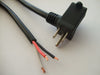 This cord has a rubber jacket in a 14/3 SJEOW. It features a molded NEMA 5-15PB series piggyback plug to an ROJ (Remove Outer Jacket) 1 1/2 inches with each conductor stripped 7/32".