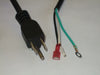 This industry standard 8ft power cord is made for the North American market. The cord is black PVC thermoplastic SJTW cable in 18 gauge 3 conductors. The male end is quality molded with a Nema 5-15Plug. The female end is open with the outer jacket removed or “ROJ” 3 1/2 inches with the white end stripped 1/2 inch and retained, the black end fitted with a 1/4" quick connect and the green end fitted with a #10 uninsulated ring. This cord is perfect for indoor or outdoor use.